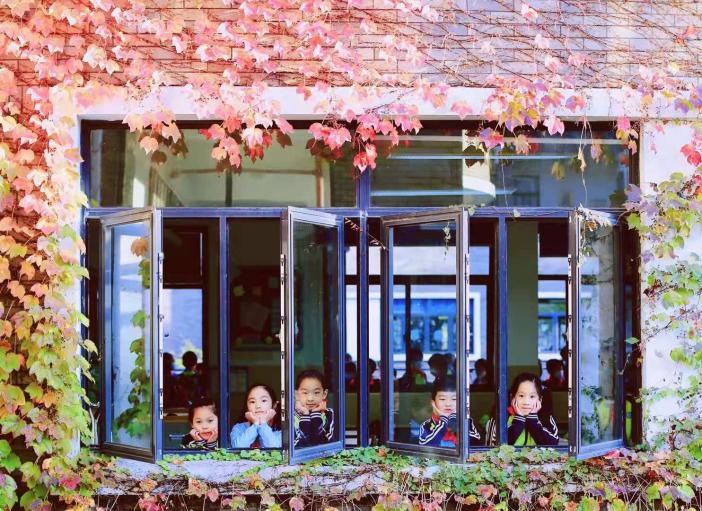 虹桥机场小学:枫叶红,银杏黄,机场蓝,校园里的萌娃是冬季最好的风景。