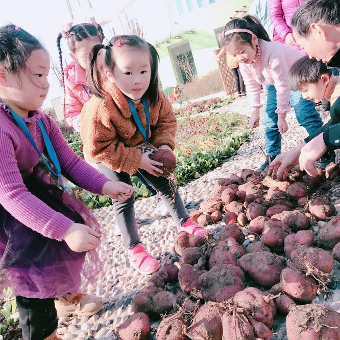 竖新幼儿园:孩子们拿着小工具,翻开土壤,挖出一颗颗红薯,体验劳动的快乐!