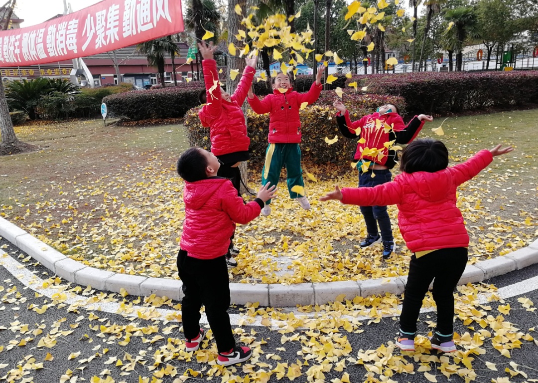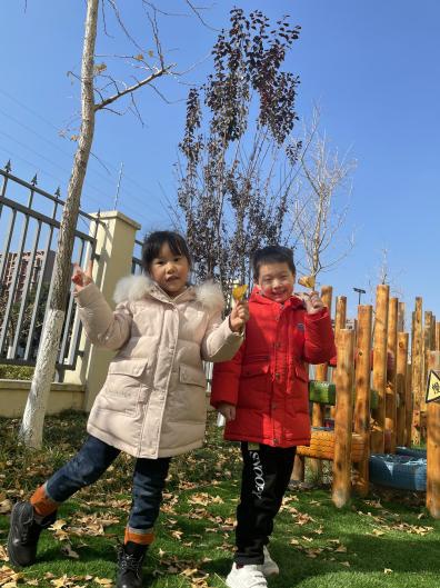 兴塔幼儿园:金黄色的银杏叶在阳光的映照下发出耀眼的光芒,孩子们最喜欢与银杏树叶共同起舞。