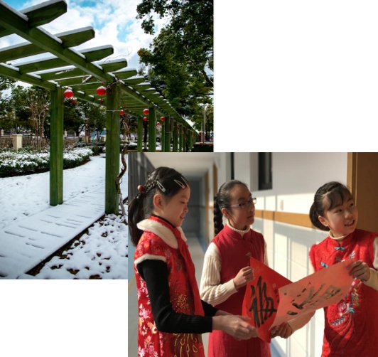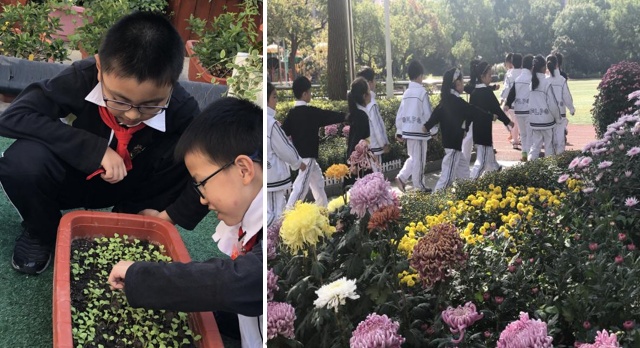 愚园路第一小学(总部):小朋友们穿上厚厚的冬装,在校园中寻找冬天的秘密。