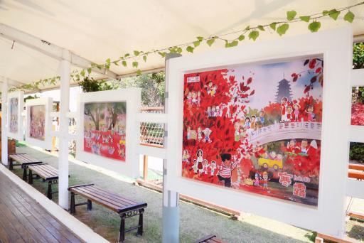 松隐小学:五彩斑斓的校园logo主题花海,相依相偎的参天古树与紫藤,充满文化气息的礼乐长廊。