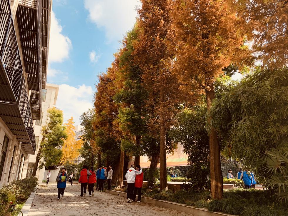 山阳中学:缤纷飘落、翩翩起舞的“黄蝴蝶”,点缀成一条通向教学楼的金色地毯,迎接学子。