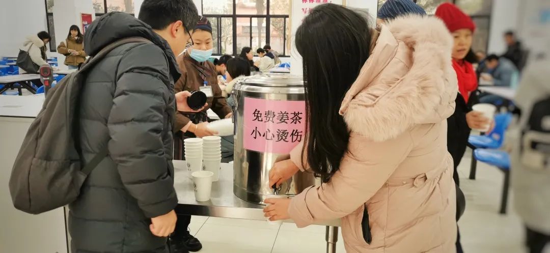 寒潮来袭,气温骤降,上海理工大学清晨在食堂为同学们免费提供姜茶。热气腾腾的姜茶捧在手里,暖胃更暖心。