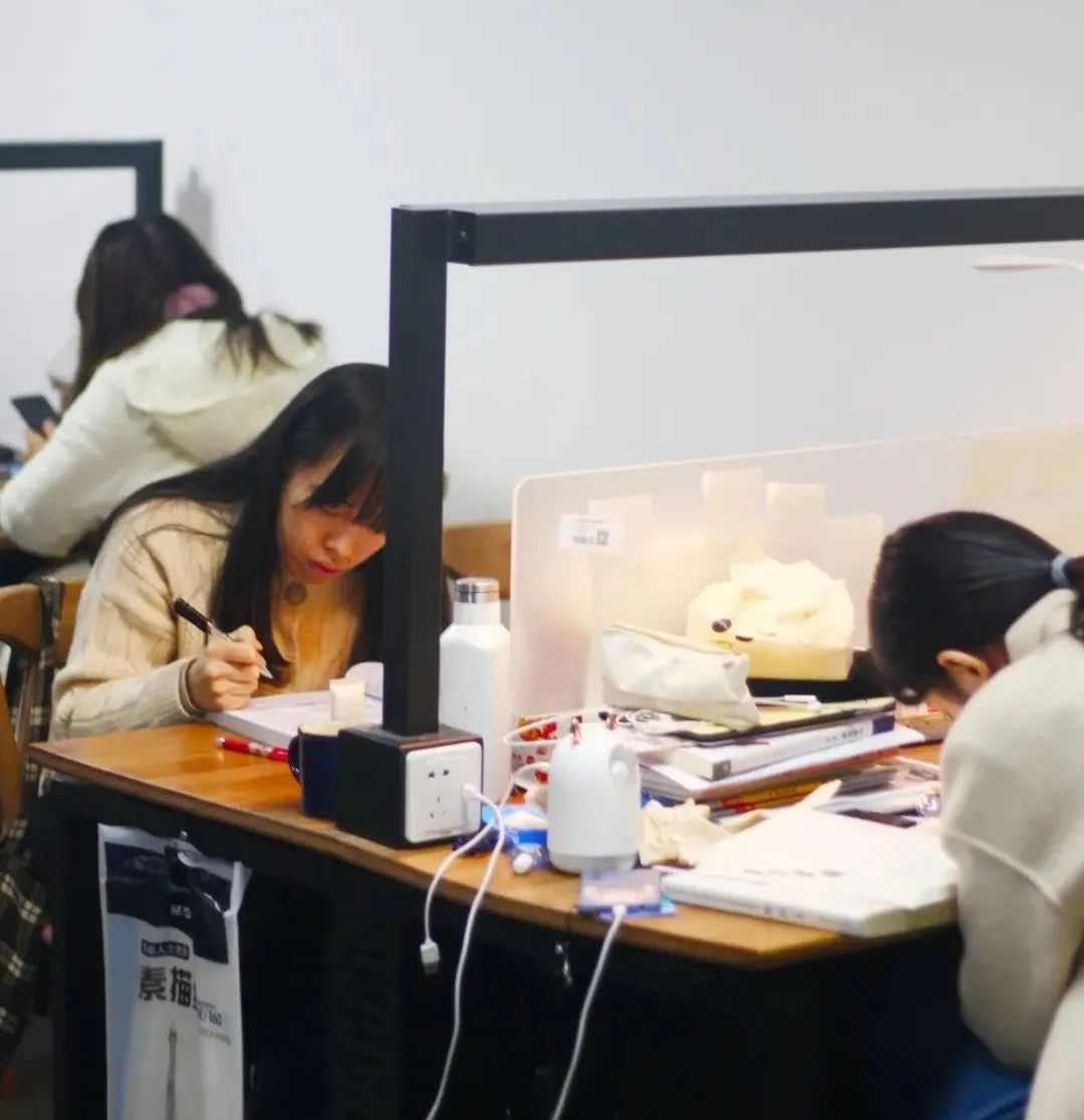 学校在多幢宿舍楼下配备了自习室,离宿舍“一步之遥”。温暖明亮的自习室是华政人期末季学习备考、取暖御寒的好去处。