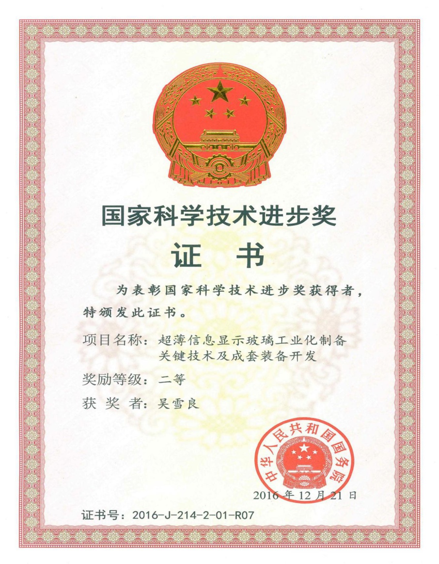 作为项目核心成员之一,研发的超薄电子信息显示玻璃工业化制备关键技术,获得国家科学技术进步奖二等奖,上海市科学技术奖二等奖,安徽省科学技术奖一等奖。2008、2017年获中国建材国际工程有限公司“劳动模范”,2018年认定为安徽省战略性新兴产业技术领军人才;2019年获“普陀工匠”称号,同年评为安徽省115产业创新团队带头人、安徽省学术和技术带头人。