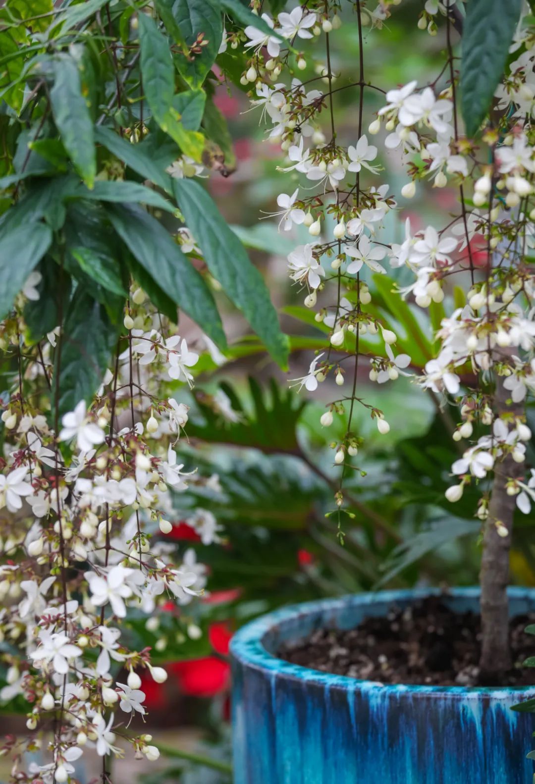辰山植物园园艺师们通过扦插、修剪、施肥、浇水等日常养护工作,使得泰国垂茉莉拥有良好的树形,并盛花绽放,盛花期1-2个月,非常适合家庭园艺或者盆栽种植。