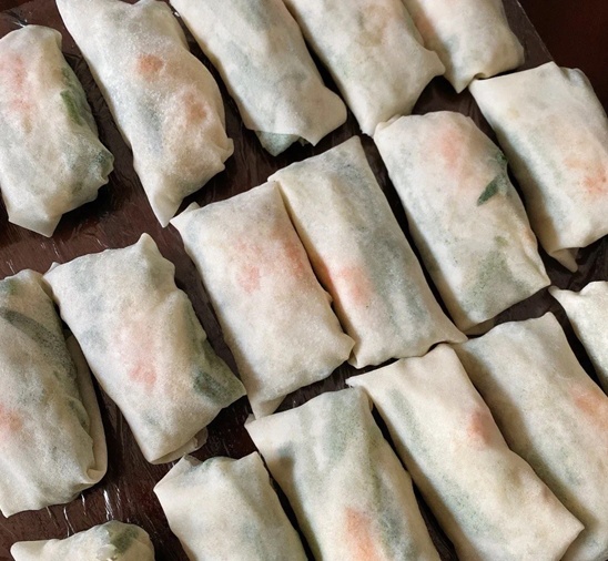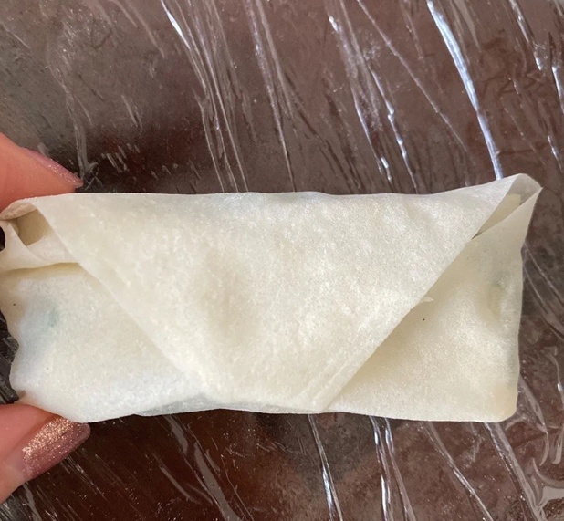 4.把最末端压在卷身下,依次包好每个春卷。