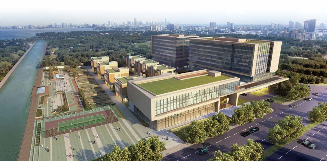 除了商务办公,项目还有一幢7000多平方米的配套楼。据介绍,配套楼里不仅有可以容纳150-200人同时吃饭的员工餐厅,还有游泳池(25米泳道)、羽毛球馆、健身房和会议室,方便在这里上班的小伙伴休闲健身。此外,还将配套生活超市、咖啡厅等,提供方便快捷的服务。