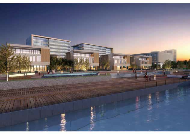 目前,项目正在进行最后的装修,总体已初具雏形。10栋建筑中,B栋、C栋为8层楼的标准型办公楼;D1-D4、E1-E3为独栋型办公楼。整体流线型造型,全楼高速网络支持,实现信息交换,内部数据共享。整个项目预计5月全面竣工并进入招商阶段。