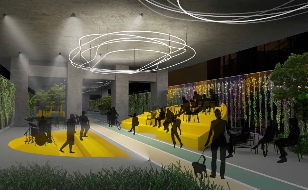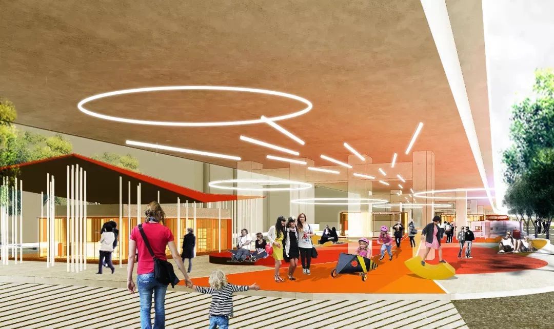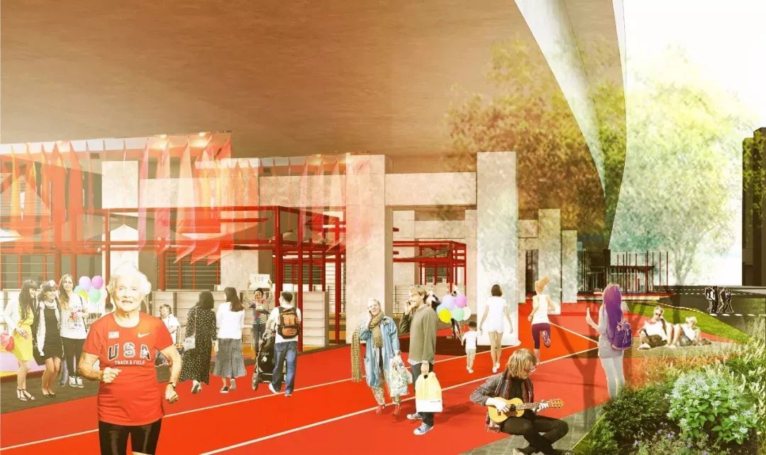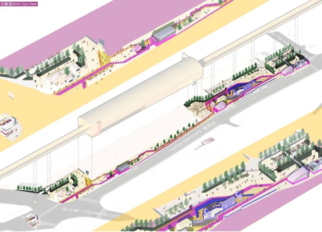▲轨道交通3号线虹口足球场站桥下空间深化方案(以上为设计过程效果图,不作为最后实施依据),资料来源:榀阁空间设计咨询(上海)有限公司