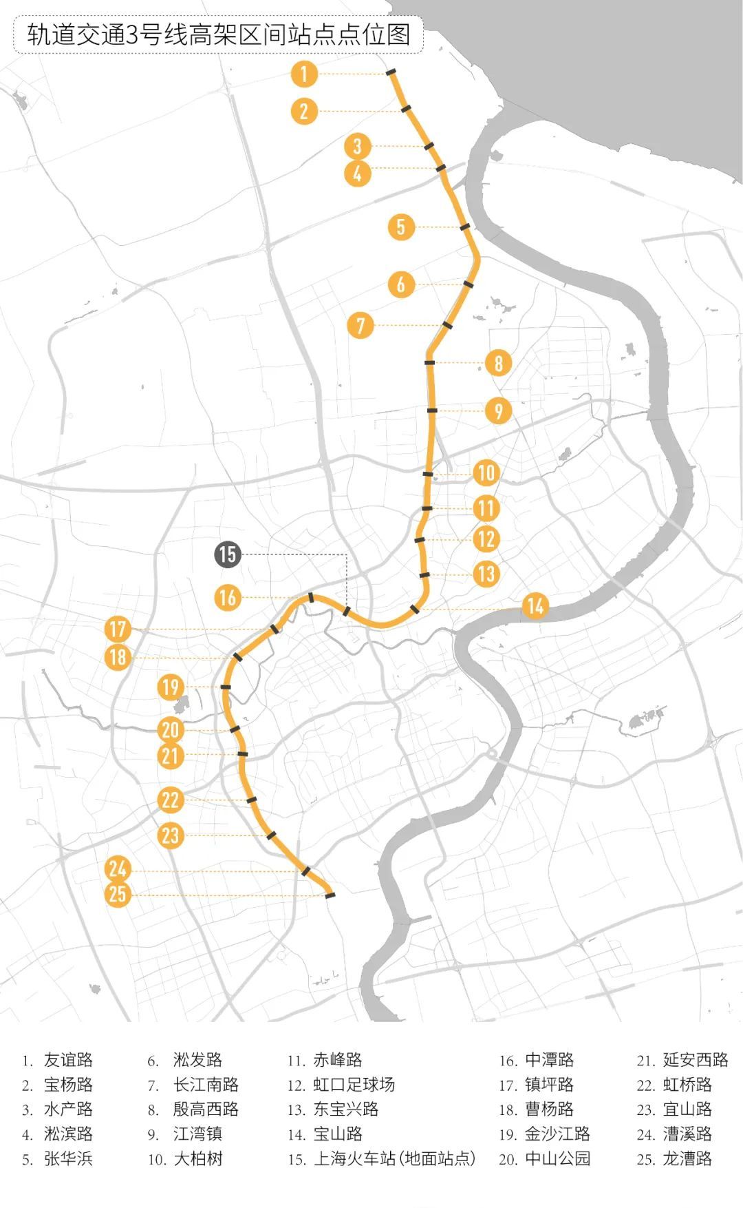 ▲轨道交通3号线高架区间站点点位图,制图©️冶是建筑
