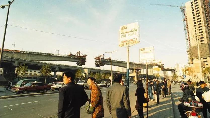 ▲1999年,中山南路漕溪路口,正在建设中的3号线高架轨道,陆杰摄,图片来源:上海发布