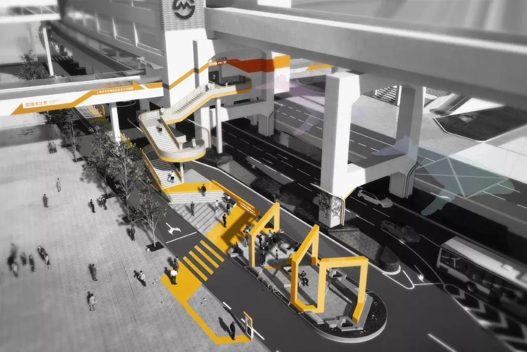 虹口足球场站点桥下空间试点正在深化过程中,方案遵循了以整合为主的原则,一是整合标识系统,增加可读性和完整性;二是整合桥下零散空间,使其成为能供短时等候的缓冲区,并借由这片小小的缓冲空间为一个站点形成“一站一景”的特色风貌景观。