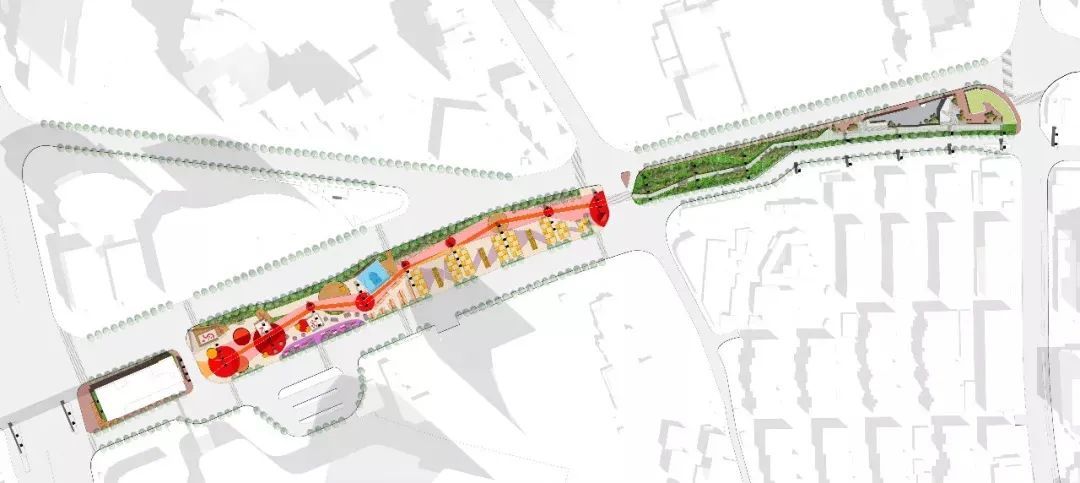 三是桥下空间的更新可以从街区优化的视野,提出更为全局性的方案,对其连接的其他城市设施提出优化建议。比如在现状车流量不大的基础上,是否可以优化凯旋路道路断面,为行人留出更多空间等。
