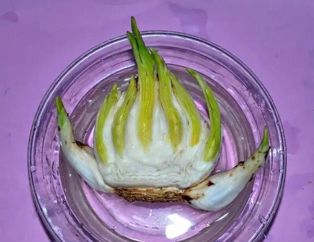 水仙花侧球与主球的雕刻方法相同。雕刻后的鳞茎应将切口朝下,放入清水中浸泡一昼夜。