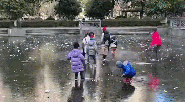 不少公园湖面、小区景观湖结冰