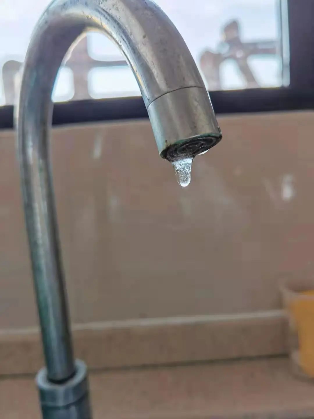 早上醒来发现了这一滴被定格的水滴,它被冻住了,这次滴落的时间可能有点久。