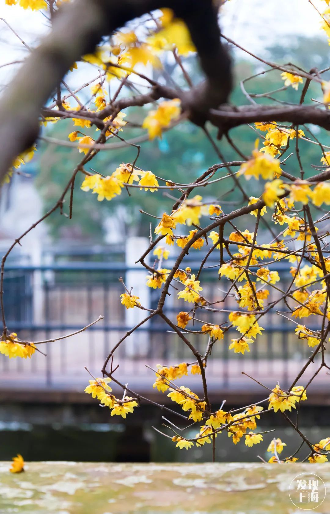 冬日里的桂林公园虽然没了桂花的点缀,但却被另一种小黄花唱起了主角。蜡梅零星种植在桂林公园内各处,最佳观赏点在鸳鸯楼、颐亭附近,随手框一个景色,香味和美景就都有了。