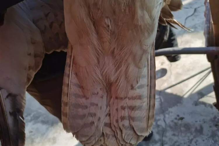 在现场,林业部门工作人员经检查,这只“鹰”左侧翅膀受伤,已无法正常飞行。崇明区林业部门将其送至东平森林公园野生动物收容救护点进行收容救护。后经专家鉴定,该只“鹰”系国家二级重点保护动物——大鵟(kuáng),这是自1943年以后上海再次记录到该物种。