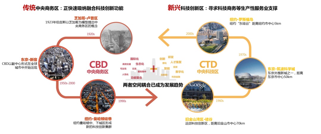 一是立足卓越全球城市定位。聚焦副中心和创新区两个维度开展精准对标,对新宿、临海、纬壹等案例展开深入研究,总结提出城市公共中心与科技创新区空间耦合的发展趋势,并进一步提炼出未来创新城区建设的空间需求。