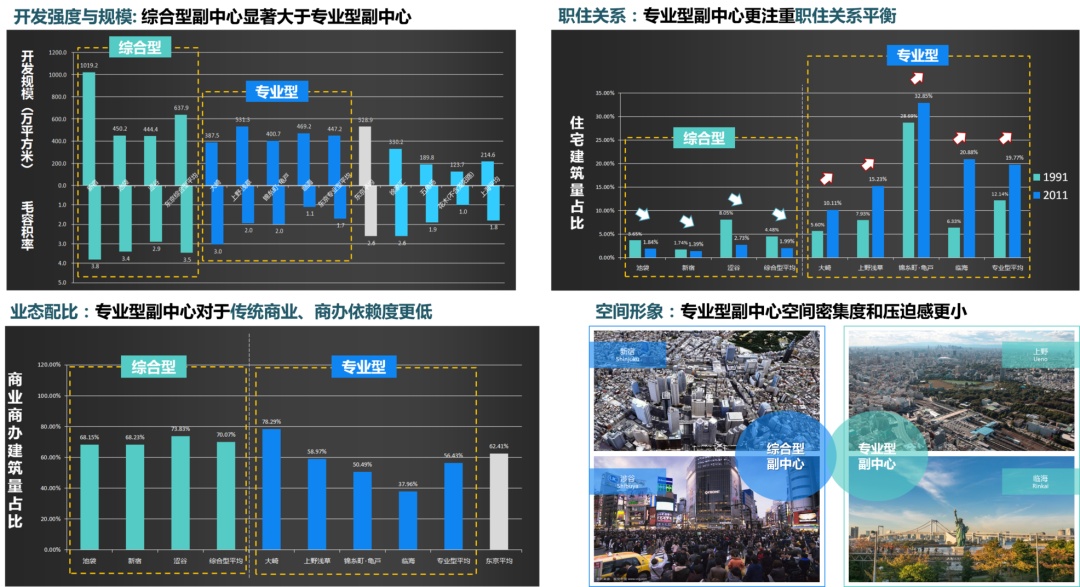 图9 专业型副中心与综合型副中心特征对比