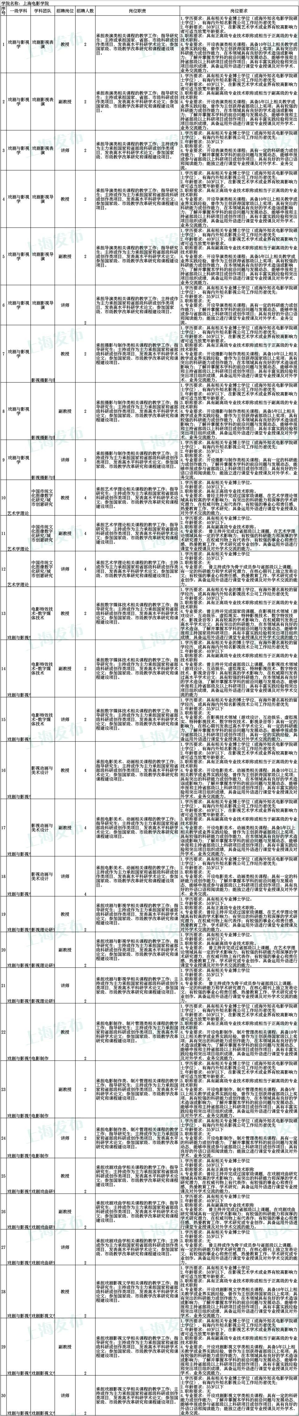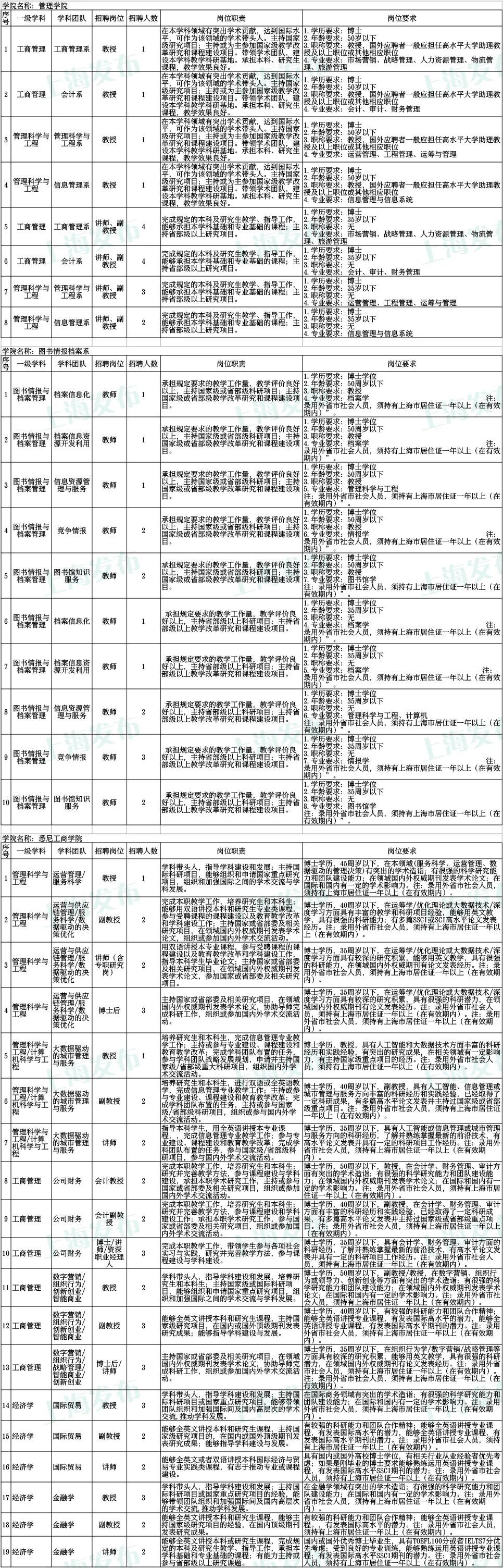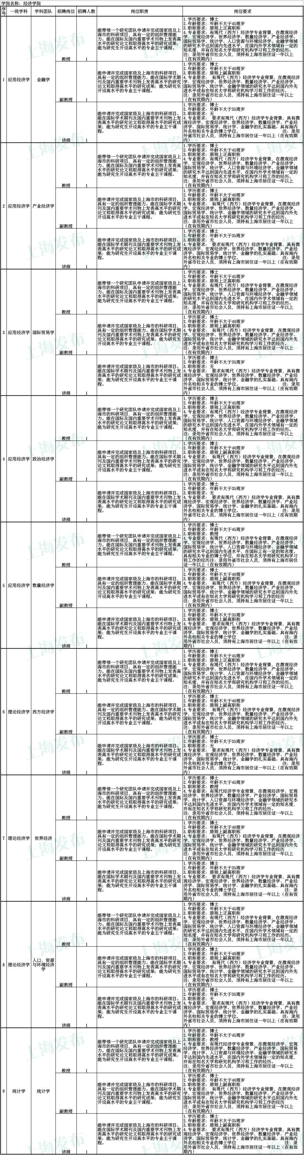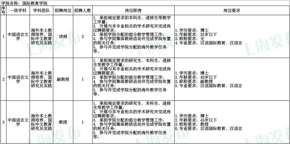 教师岗位:除体育、艺术、小语种等个别岗位,应具有博士学位,身体健康,品德良好,有较强的科研能力。具体要求见上海大学招聘网站。