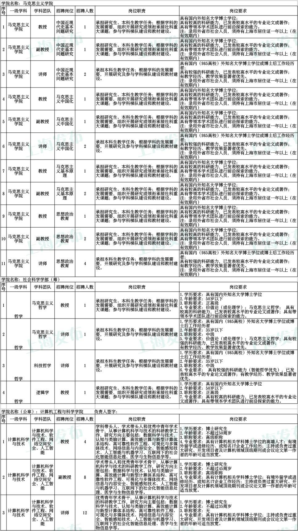 教师、科研岗位:主要负责学校日常教学及科研工作,具体说明见上海大学招聘网站。