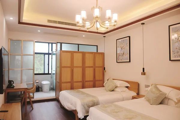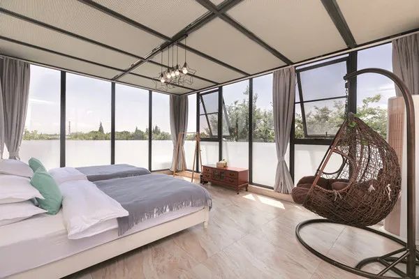 游客在“九七”,可以吹着微咸的江风,行走在乡村的阡陌,有甜蜜的色彩,也有江边的情怀,更有家的惬意和温暖。“九七”的设计风格多样,现代风、民国风,欧美风和徽派风……让不同喜好的住客都能找到自己满意的房间。来这里游玩的多是家庭和团队,民宿仅提供早餐,其余两餐,客人可以自助下厨,增添了不少乐趣。