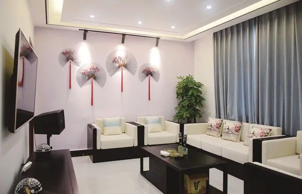 “谣歌”还配有KTV、健身房、棋牌室、书吧、茶室等娱乐设施,可以举行小型会议或者音乐派对。室外的小花园,可以尽情玩耍,还可以来一场美味的烧烤。从玻璃健身房向外望去是一片金色麦浪,很别致。民宿附近还有一个村民公园,崭新的跑道,铺满颜色各异的落叶,背景是郁郁树林,美得像一幅油画,这里绝对是旅游度假的好选择。