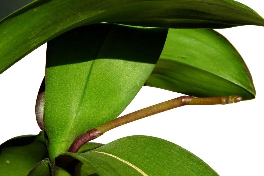 有的花友发现在蝴蝶兰最下面的茎部各串出一个“小枝条”,在询问这是否为花梗?对,就是花梗!通过适当增加施肥频率(但施肥浓度要更稀,控制在2000-3000倍)和提高温度后,花会开的更快一些。
