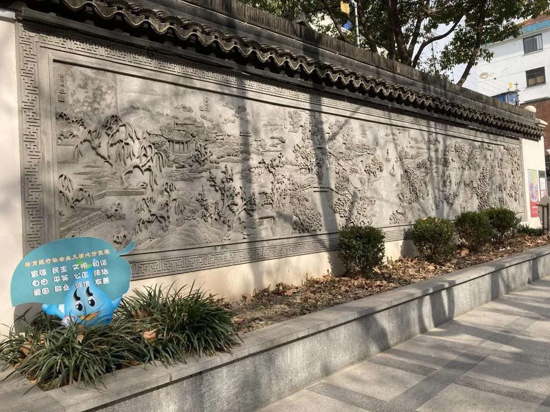 行至场馆出口处,有一方长约五米左右的“川沙八景”砖雕照壁,可作为离开内史第的最后一个打卡点。