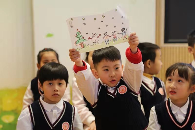 除了学科演绎,孩子们还将书写工整的写字作品和充满想象的绘画作品在“晓黑板”的活动区展示,家长、同学互相欣赏、学习,为喜欢的作品点赞、留言。