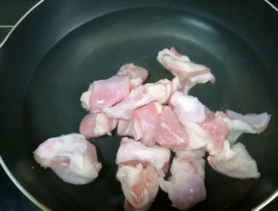 第一步:羊肉清洗下,切成块,冷水放入锅中焯烫下,捞出来洗干净,控下水,炒锅置于火上烧热后,将羊肉块放入在锅中小火慢慢煎一会;