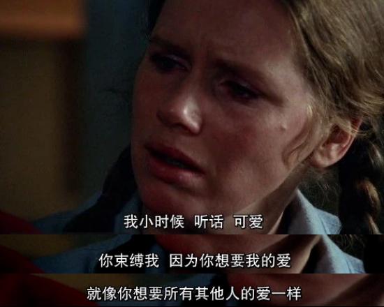 成长时的她孤僻、自卑;长大后的她不懂得如何爱别人,也无法相信丈夫对她的爱。