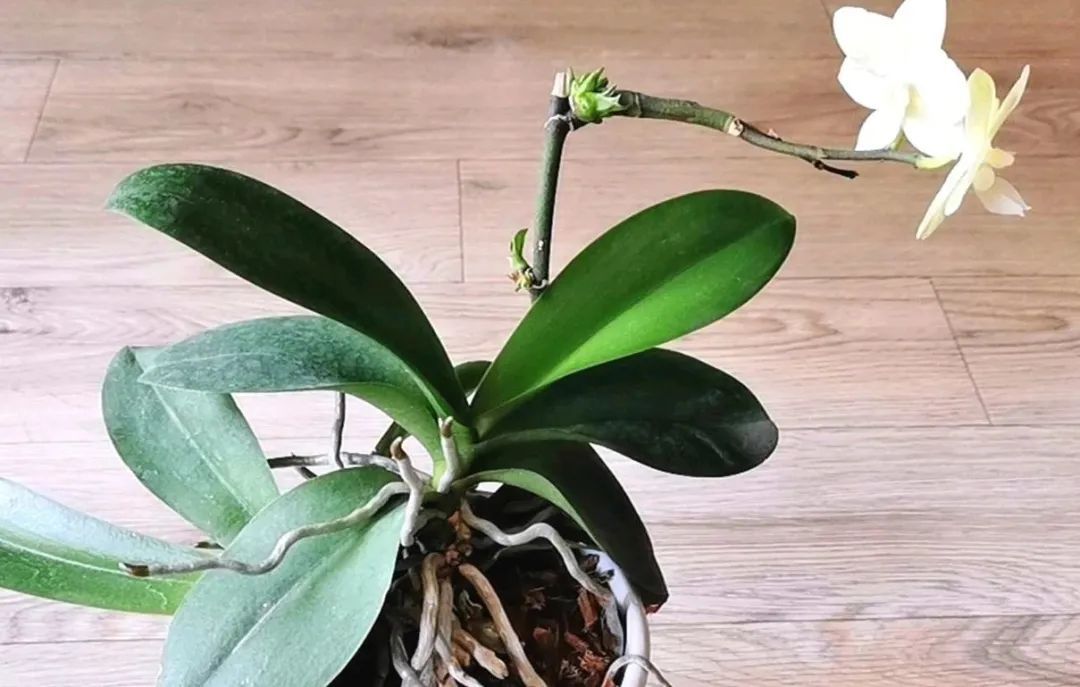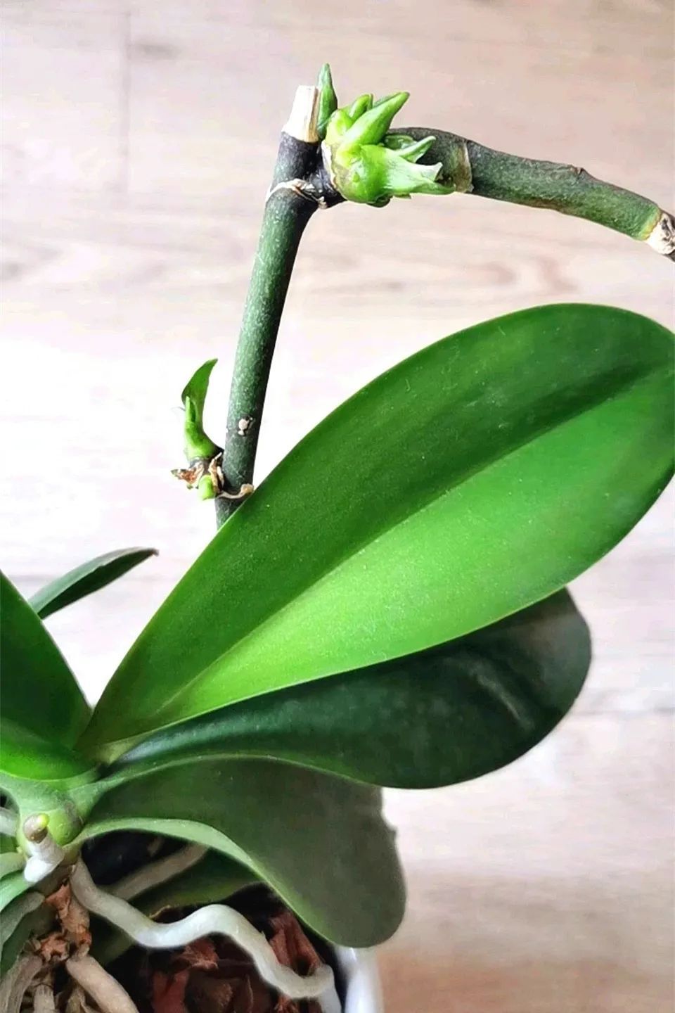 有的花友发现在蝴蝶兰最下面的茎部各串出一个“小枝条”,在询问这是否为花梗?对,就是花梗!通过适当增加施肥频率(但施肥浓度要更稀,控制在2000-3000倍)和提高温度后,花会开的更快一些。