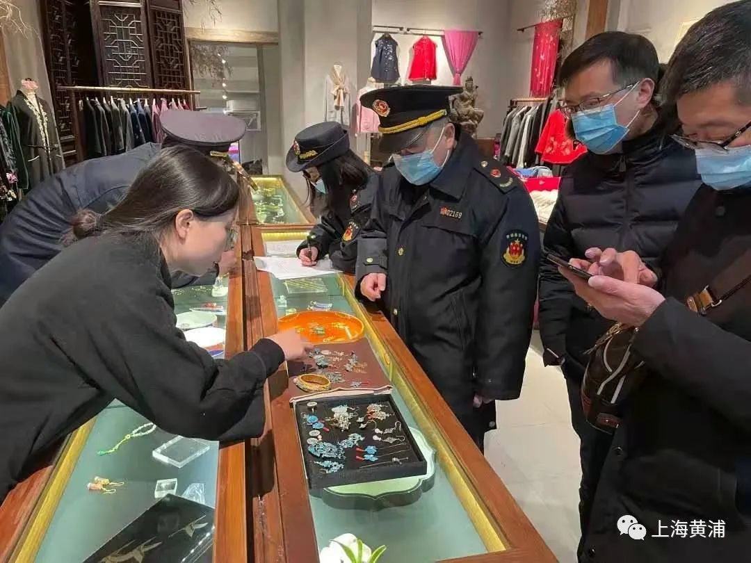 近日,黄浦区开展了野保联合执法行动,对泰康路某店铺进行了突击检查。 检查中发现该店正在售卖点翠工艺饰品,共21件,包括胸针1枚,戒指1只,手镯1个,耳环18副。
