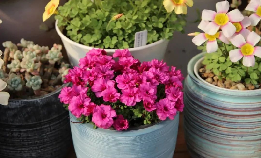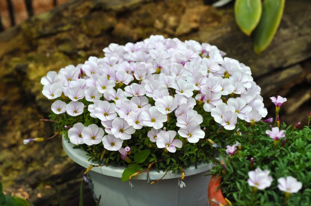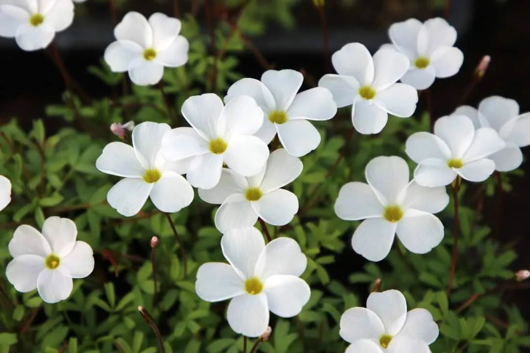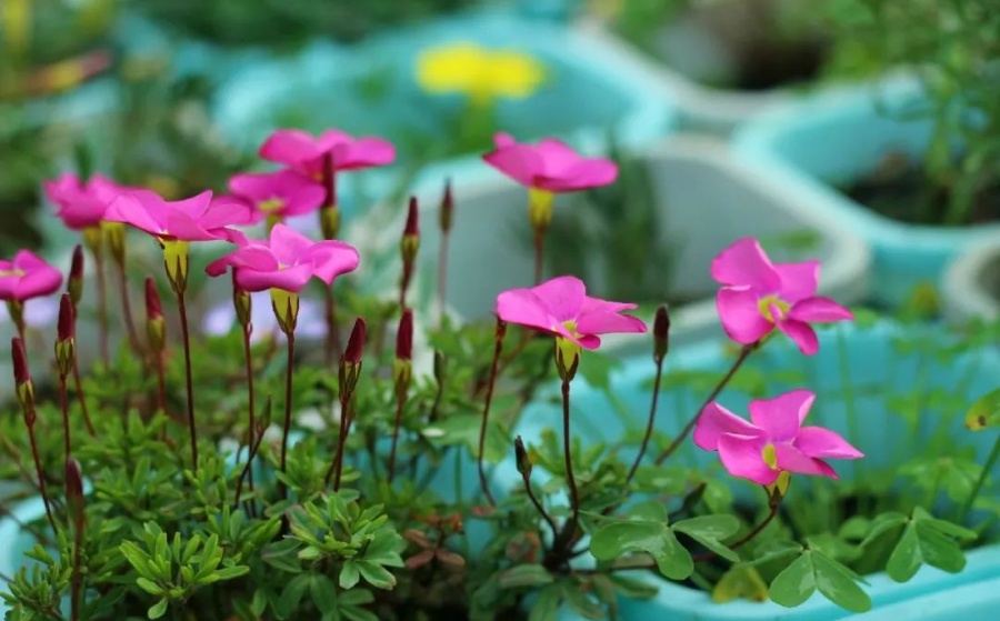 光叶家族是适合密植的类型。高密度种植的观赏效果非常好,且多数成员属于中花型,在早花型逐渐开败、晚花型尚未开始的空窗期,起到承上启下的作用,非常适合盆栽观赏。需要注意的是,花色受环境温度影响较大的仅有桃之辉酢浆草这个物种下的所有品种,普遍变色规律为“温度越低,颜色越深”。