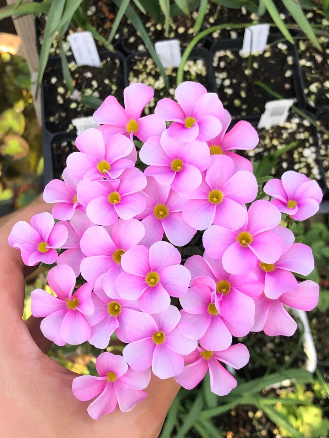 桃之辉 这个名字由日本传入,形象地描绘了玫红色原种大量盛开时堪比桃花的美丽场景。虽然“光叶酢浆草”这个名字更为正规,但“桃之辉”,这种更为形象生动的名称被广大爱好者所接受。