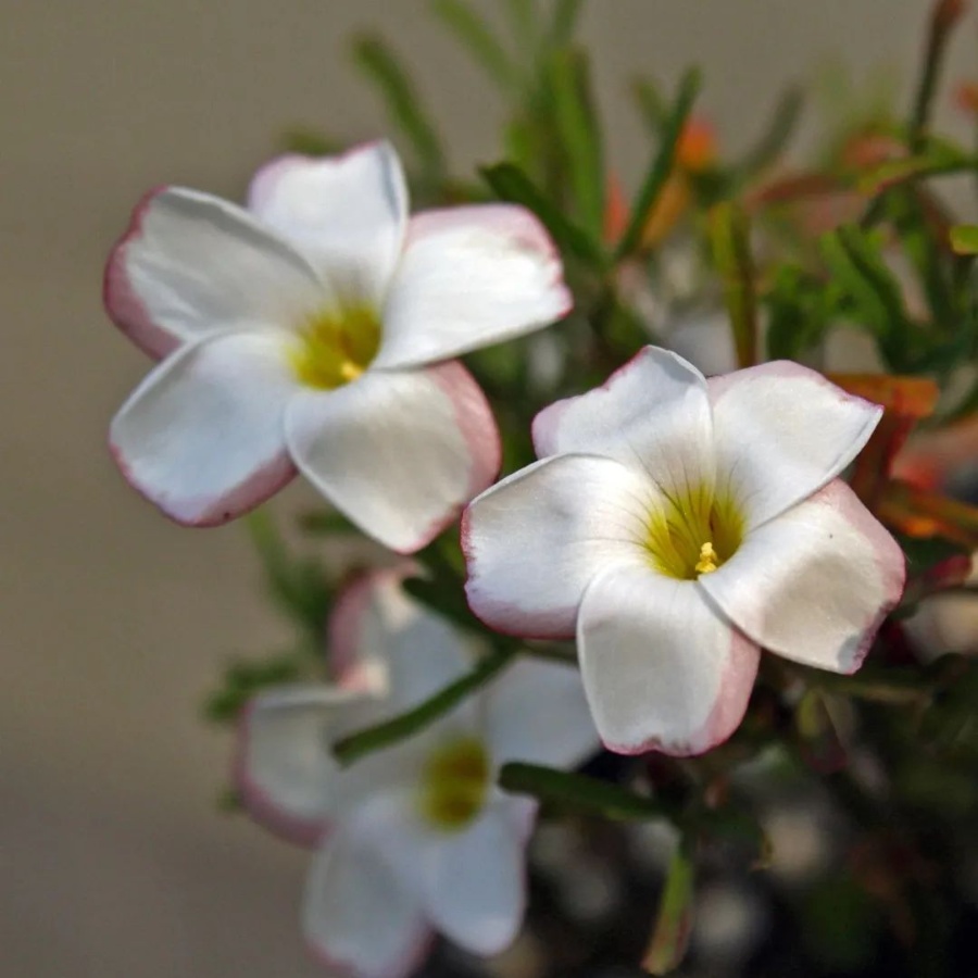 跟上两期的几个大家族相比,光叶家族的物种在中国为数不多,能轻松地列出包含其个体与杂交种的名单。然而,成员稀少并不影响它们的受欢迎程度,最受欢迎的酢浆草之一—双色酢浆草(又名“双色冰淇淋酢浆草”)隶属于这个家族。