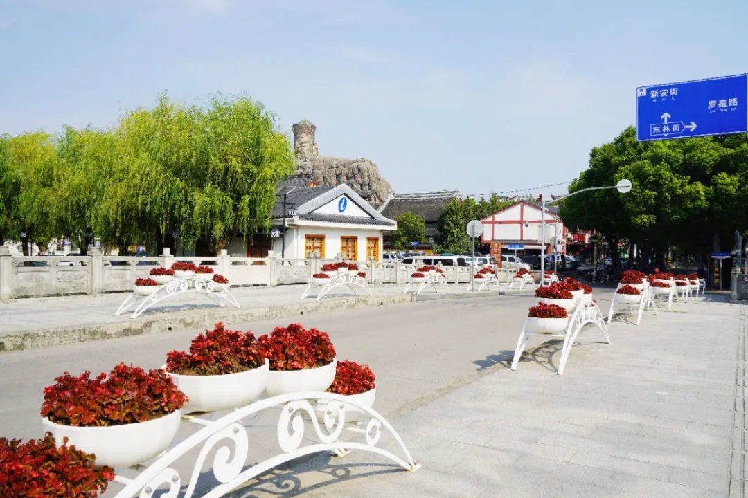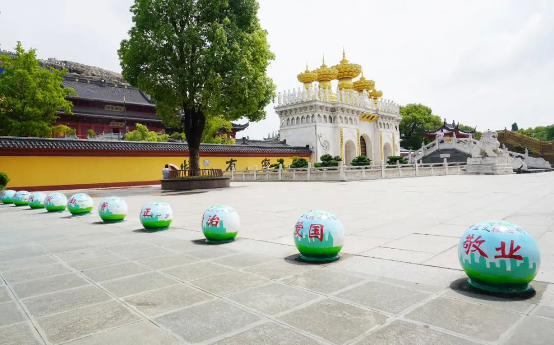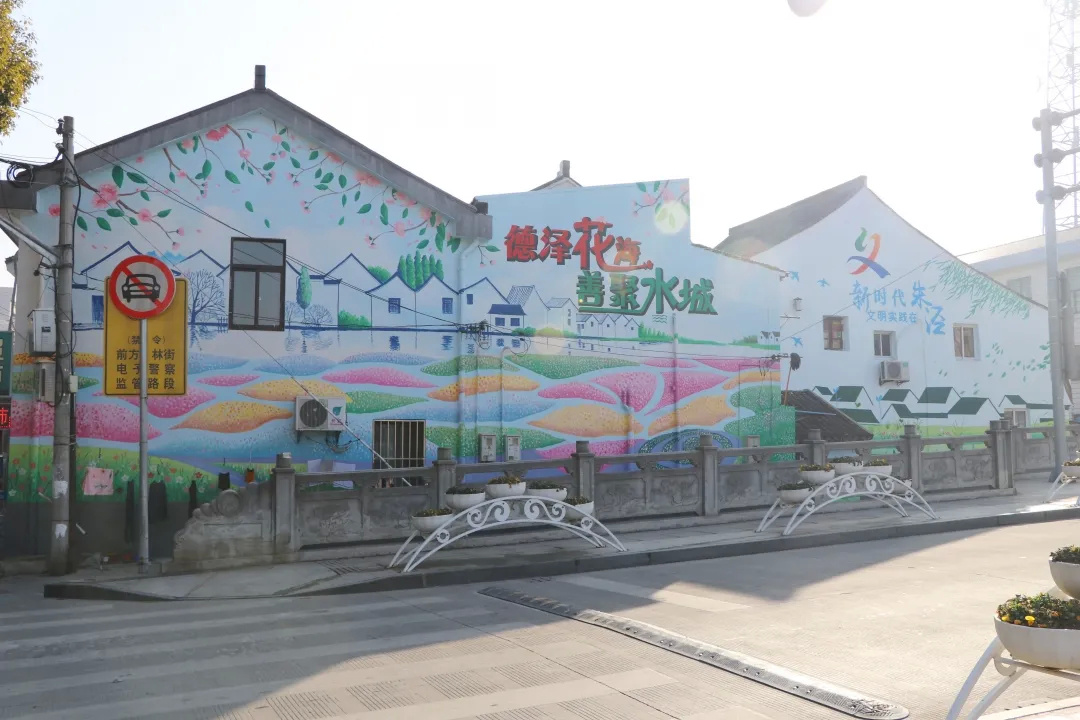 近日,在东林寺旅游景区周边,屋檐下,一幅新添的彩绘文化墙让人赏心悦目;道路两旁的花卉景观,扮靓街头,朱泾“德泽花海、善聚水城”人文气息浓厚。