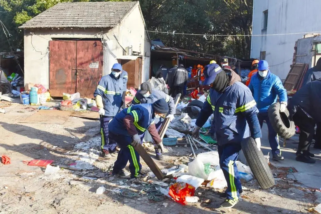 2020年“双创”工作期间,朱泾镇绿容所多次会同城管中队、金朱环卫、拆违办、重点工作推进指挥部等部门对东林街、万安桥下坡、民主村B02地块废品回收点等区域展开环境整治专项行动,对车辆乱停放、环境卫生、黑色广告、违章搭建、乱堆物等现象进行集中整治、彻底清理,全面提升城乡环境卫生管理水平和市民市容满意度。