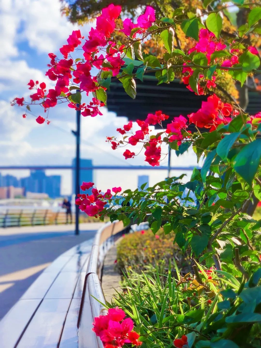 碧蓝的天空下,各种景观花草争相绽放着如云霞般绚烂的色彩,它们跟着微风摇曳,散发出阵阵清香,令人赏心悦目。