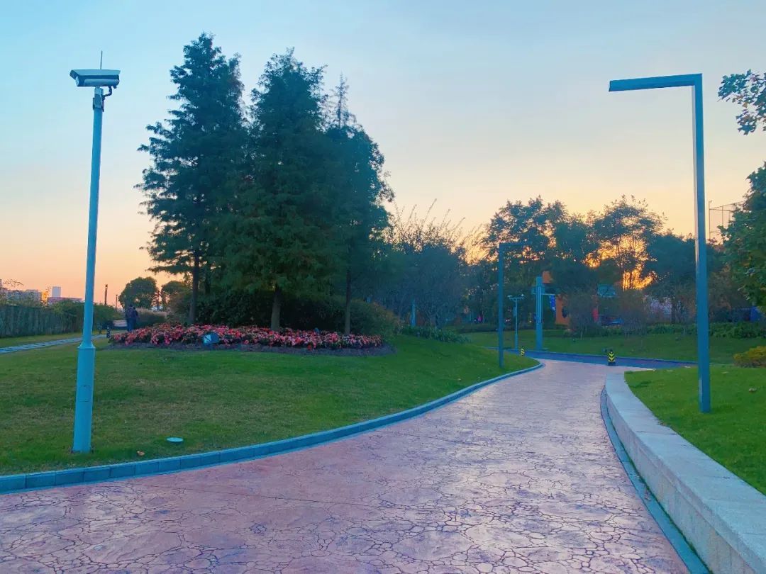 远处的天空有一片橘红色的晚霞,美得如一首诗 , 像一幅画。