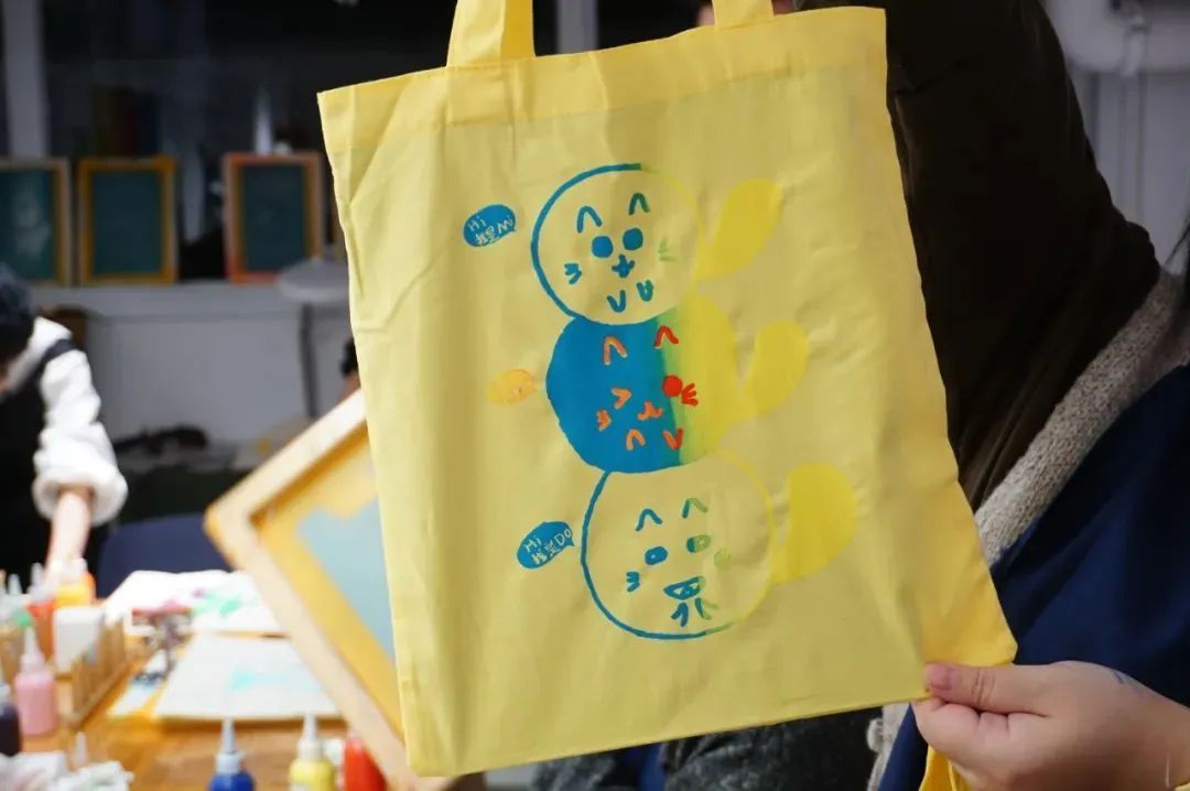 ▲用丝网印刷的方式印制的布袋