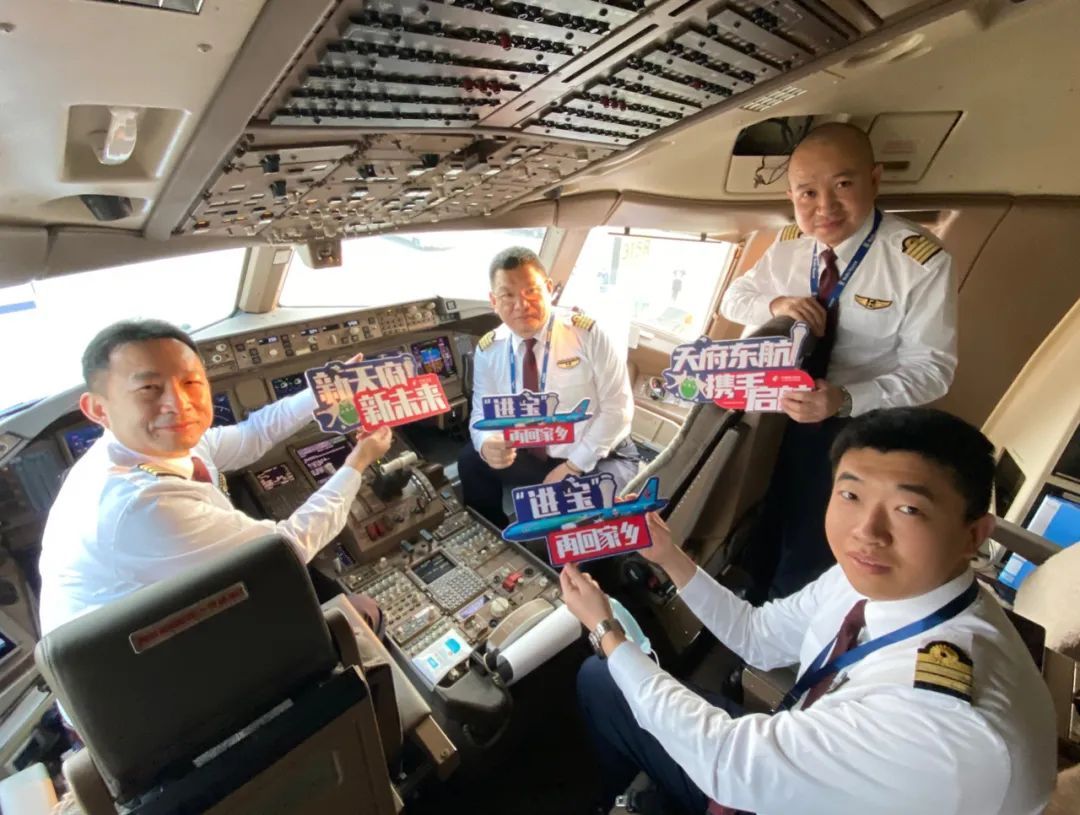 早在2020年7月2日,东航“进博号”亮相发布之际,就从上海虹桥首航成都双流,与成都结下深厚情缘。此次首飞“天府”,彩绘飞机传递的“开放”“合作”“欢迎世界宾朋”等美好寓意与新时代新机场完美融合,一起开启对美好未来的无限期待。