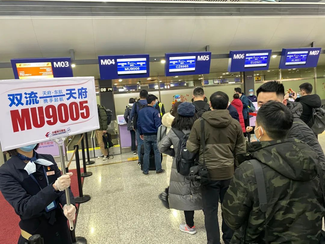 东航高度重视成渝地区航空快线的打造,助力“成渝地区双城经济圈”建设发展。目前,东航在四川有成都双流、泸州、宜宾、达州、广元、西昌、攀枝花、南充、绵阳9个航点,从成都双流机场始发冬春季通航点达46个,包括上海、北京、昆明、西安、武汉、杭州、南京、青岛、广州、深圳、厦门、长沙、兰州、南昌、临沧等城市。其中,成都—上海直飞航班每天多达16个,帮助旅客3小时内快速抵沪,极大程度上满足了商务旅客的出行需求。