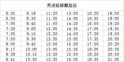 秀波路顾戴路站首班车6:35,末班车21:05。