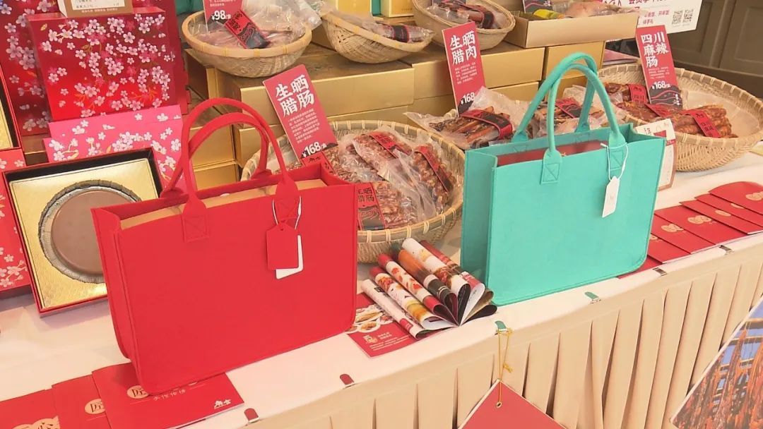 唐宫万象城店店长 叶龙飞:我们上线的“幸福年菜”一共含十道菜品,基本上是蒸跟煮两种,这样拿回家是方便操作,避免一些繁复的操作程序,所以基本上整套菜一个小时就可以搞定的,比方说鱼有豆酱蒸黄鱼,回家蒸就可以了;比方说我们的花椒鸡,拆开包装直接煮,每个菜品都有独立的包装,它有详细的说明,你按照流程做下来就非常简单。