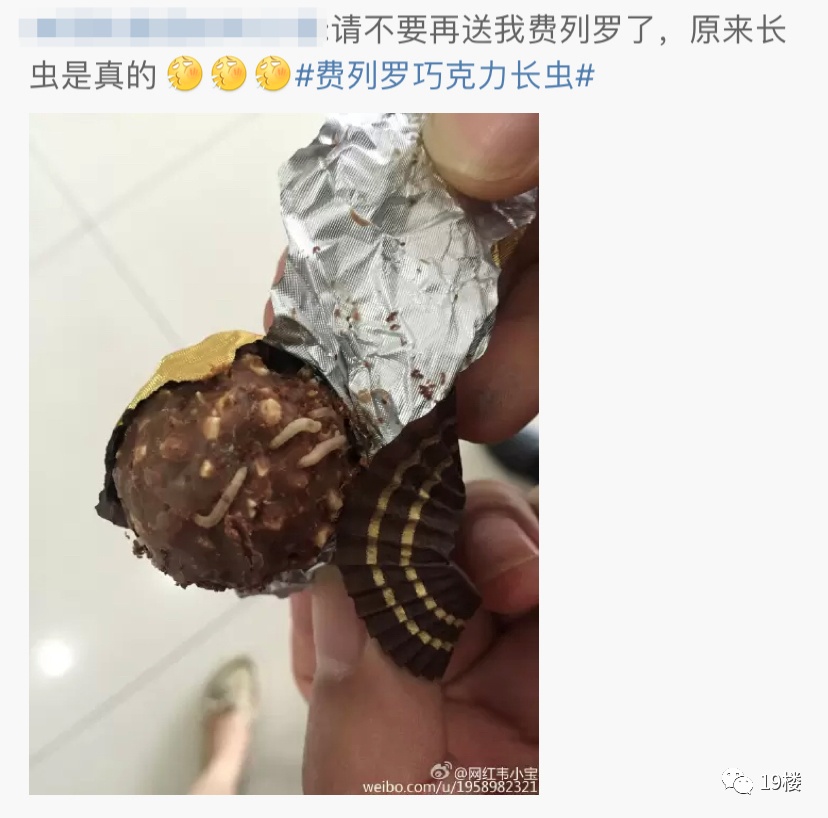 这时,有网友站出来表示以前自家一盒费列罗巧克力也长蛆了。