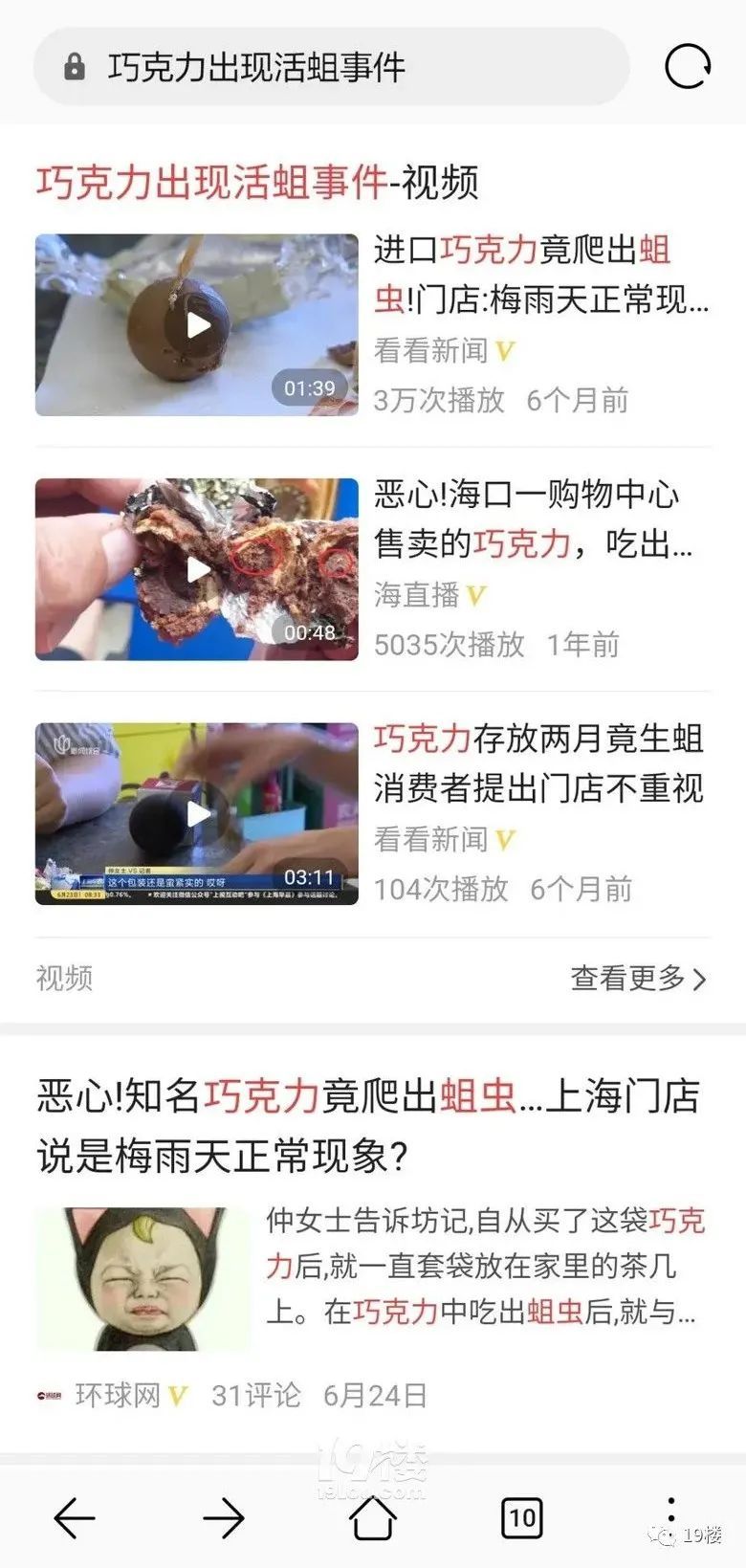 除了蛋白类产品外,文中提到的巧克力长蛆情况也频频发生。